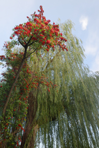 シダレヤナギに負けじと、トキワサンザシが成長をしました。