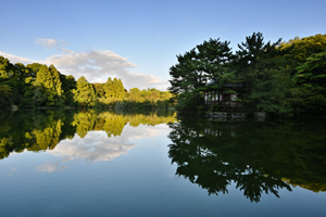 風がなくて穏やかなので、綺麗な水鏡ができました。
