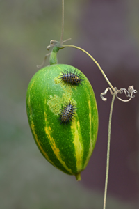 トホシテントウの幼虫が、皮をがりがりと食べていました。