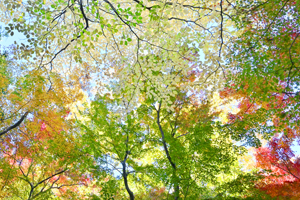 イロハモミジの紅葉を、前景で大きくぼかしました。