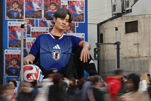 サッカーの久保建英選手の像が、道玄坂に設置されています。