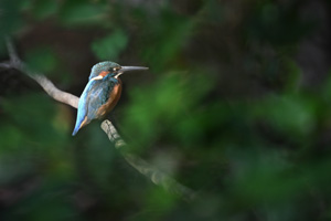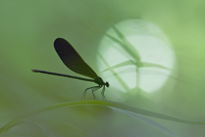 薄暗い林の中に、全身を黒で纏めたハグロトンボがいます。