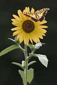 キアゲハが、遅咲きのヒマワリに来ました。