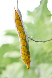 大好きなヤマノイモの細い蔓を、ちいさな腹脚を上手に使い、