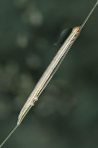まずはキイロスズメという蛾の幼虫で、背中のほうから写しました。