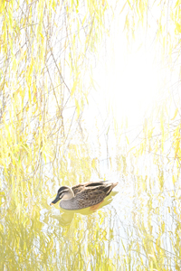 あたりを泳ぐカルガモたちを、まるで気にすることもなく、