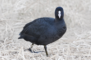 オオバンの眉間には、額板と呼ばれる白い盛り上がりがあり、