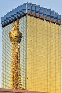吾妻橋のアサヒビール本社ビルも、負けじと輝いていますが、