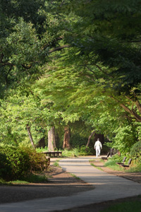 遊歩道に斜めに射す光が、なかなかフォトジェニックでした。