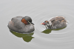 ひさしぶりに、カイツブリの親子を見かけました。