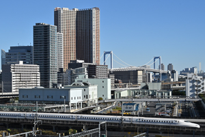 4階のデッキからは、レインボーブリッジが近くに見えます。